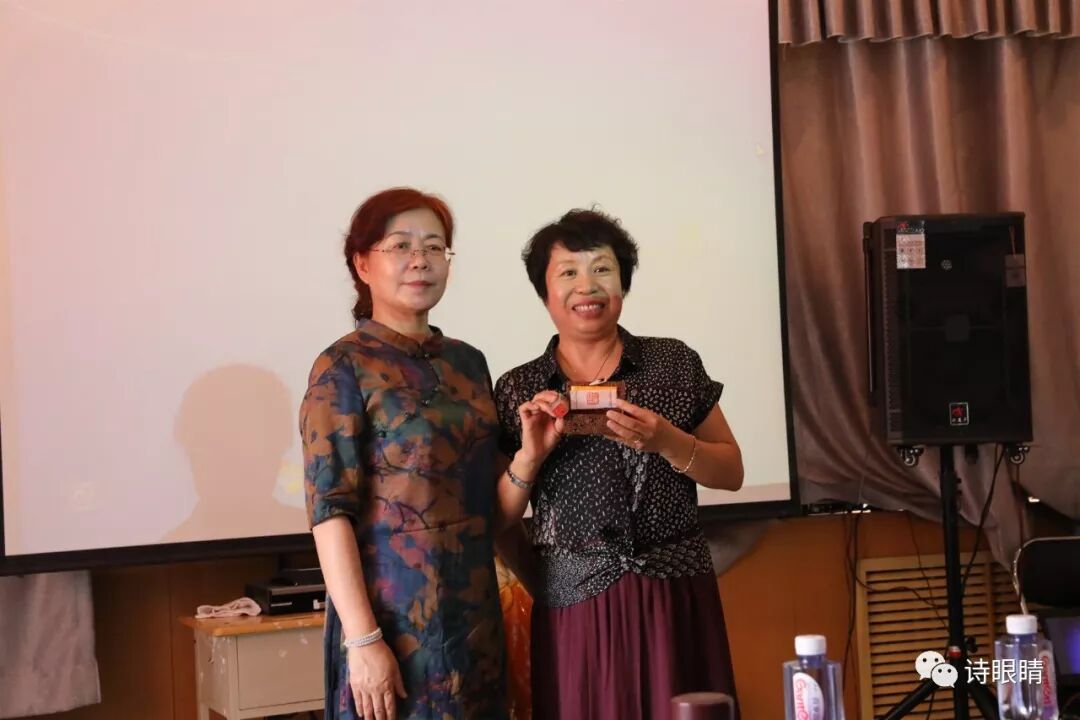 赠送著名篆刻家高晋勇先生为诗人任爱玲篆刻的印章一枚(高先生未到现场,诗人郁芳代送);
