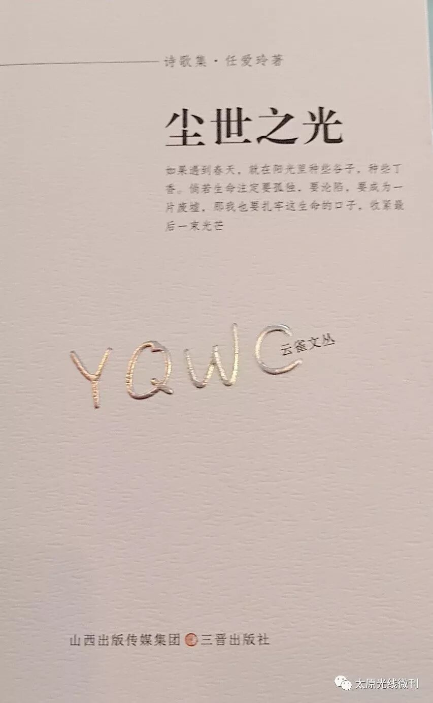 任爱玲这些年的诗作,写人世的逝水流年,写乡土光影中的人物事件,写北方土地上丰厚的人文积淀,写下一个身为知识分子的文静女人的所思所想、所感所悟,语言质地并不倾向口语甚至口水,而是矜持着质朴与自然、清秀与优雅,不乏古典之美和轻灵之气。她的很多诗作,看起来像光亮映照下的一潭静水:清清浅浅,但蓄满了人世情意。祝贺任爱玲的这本《尘世之光》结集出版,愿诗人以此作为诗艺探索途中的新的台阶,向高远处勇敢跋涉,去拥抱那更加迷人的风景。