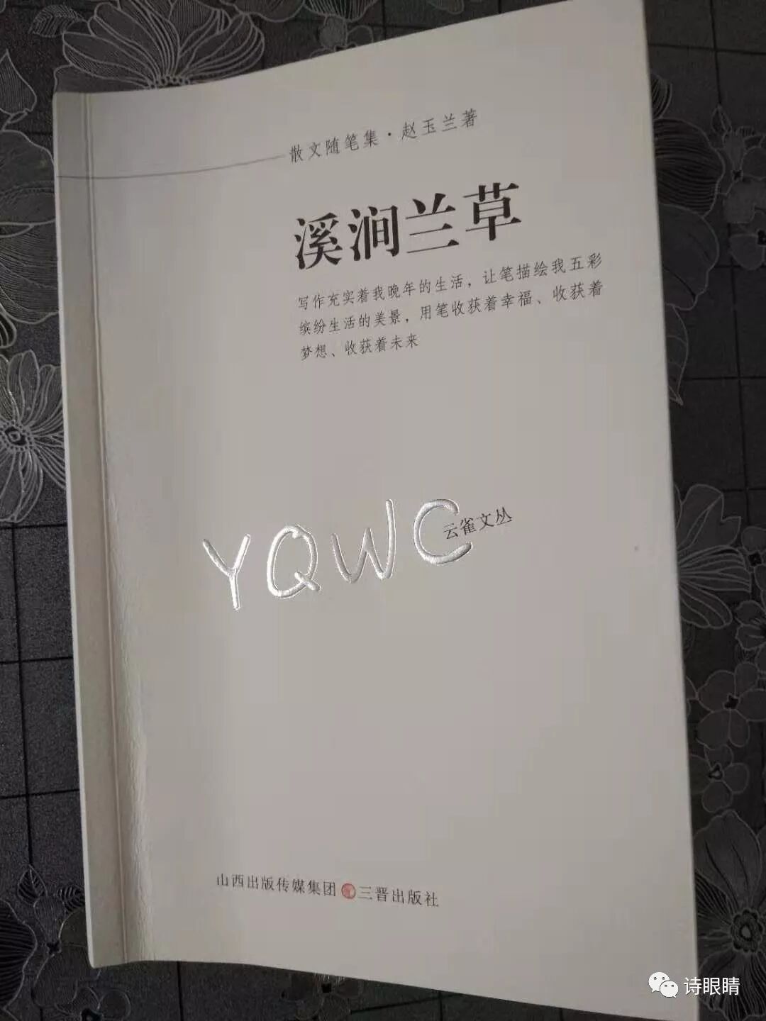 拿到赵社长的这本《溪涧兰草》电子书,我马上打印成册,忙中偷闲有空就读,我吃惊赵玉兰先生能在退休后,还能不断著书,精神可佳,这本书有家长里短;有文学宦海;有所感所悟;有艺术构思。整本书的语言思想“天然去雕饰,清水出芙蓉”,豪无矫揉造作,虚假成份,但如行云流水,对家庭对生活的真情爱意溢于字里行间,有一种温暖、大爱的情怀。它分五辑: