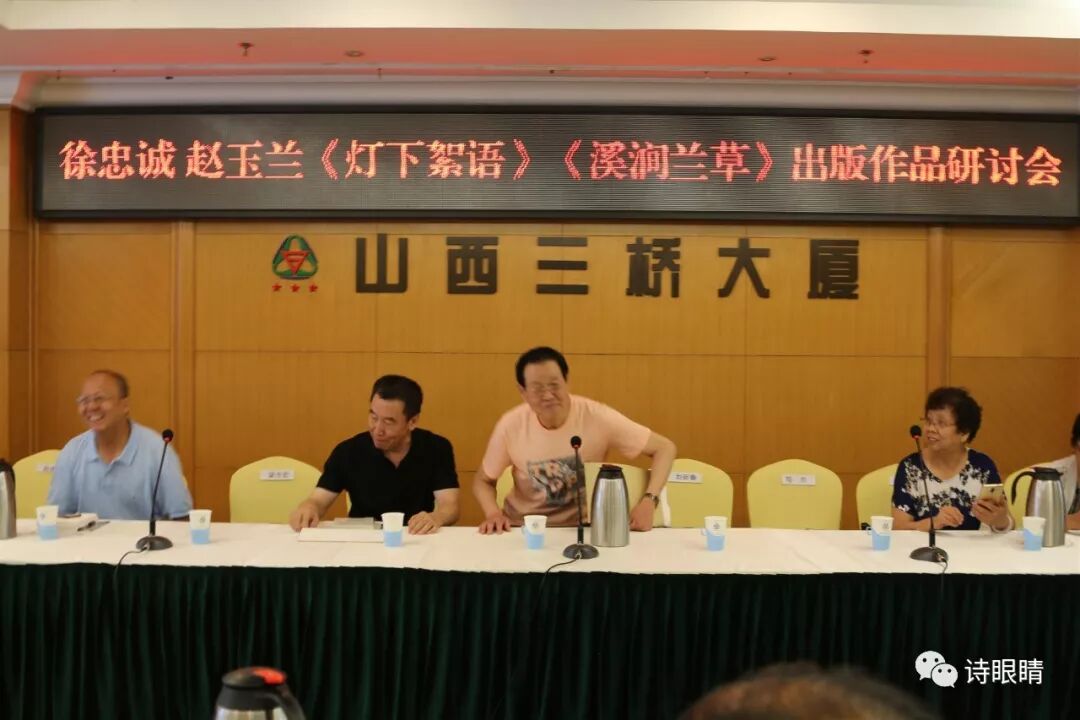 2019年7月20日,在太原市三桥大厦8楼会议室,山西散文学会、山西省作家协会诗歌委员会太原分会和太原市诗词学会联合举办徐忠诚 赵玉兰《灯下絮语》《溪涧兰草》出版作品研讨会暨新书首发式,诗歌散文界的相关领导以及活跃在省市的部分诗人作家、新闻记者出席了此次会议。参会者共计80余人。