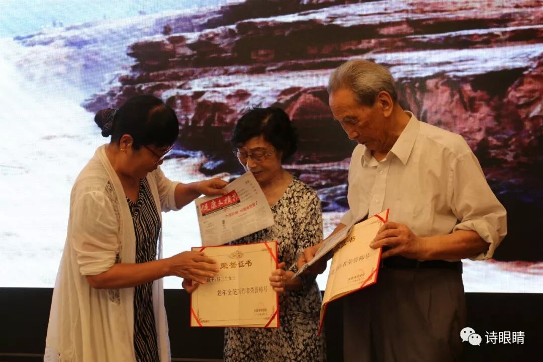 太原诗词学会常务副会长孙爱晶向两位作者颁发“老年金笔写作者荣誉” 证书并代表太原诗词学会向两位作者赠送半年家庭医生报和健康文摘报