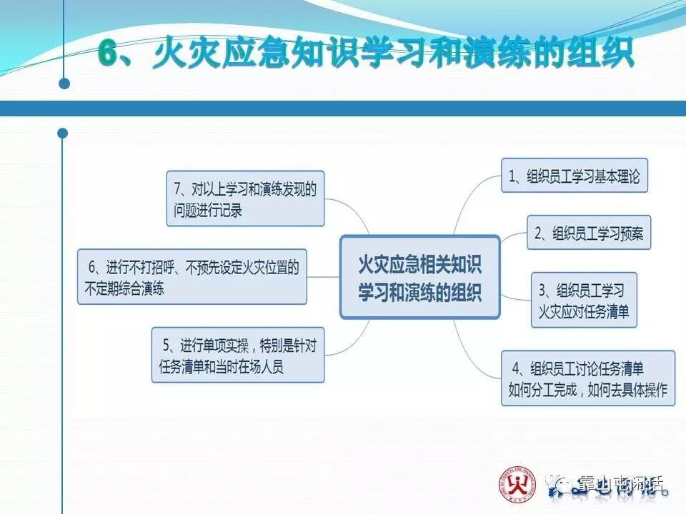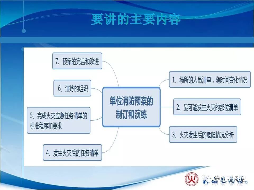 如果翻一下书本,无非是要成立几个组,比如指挥组、灭火组、疏散组、保障组、通讯组,等等。