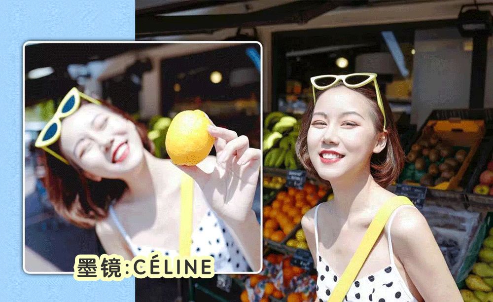 猫眼墨镜从理论上来说,最适合太阳穴凹陷的人。这两幅猫眼墨镜也做到了这一点,上扬的造型能正好填补在太阳穴位置。而且圆形的猫眼款,比方形的猫眼款,更能修饰乌云稍稍有点方的脸型。👇