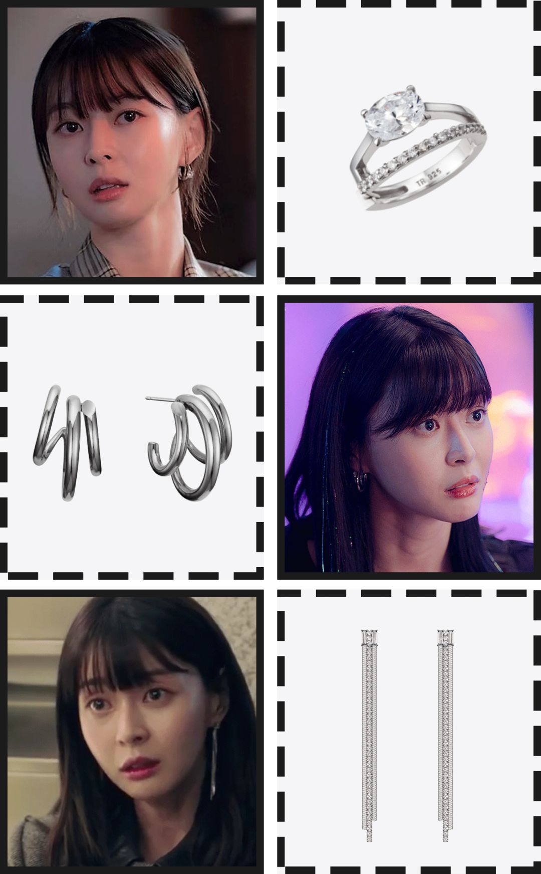 我发现她的耳环大多是韩国现在很热门的牌子,尤其是TROIS ROIS这个牌子的耳环,在剧里就出现了好几次,选择的都是很有设计感的银色耳饰👇
