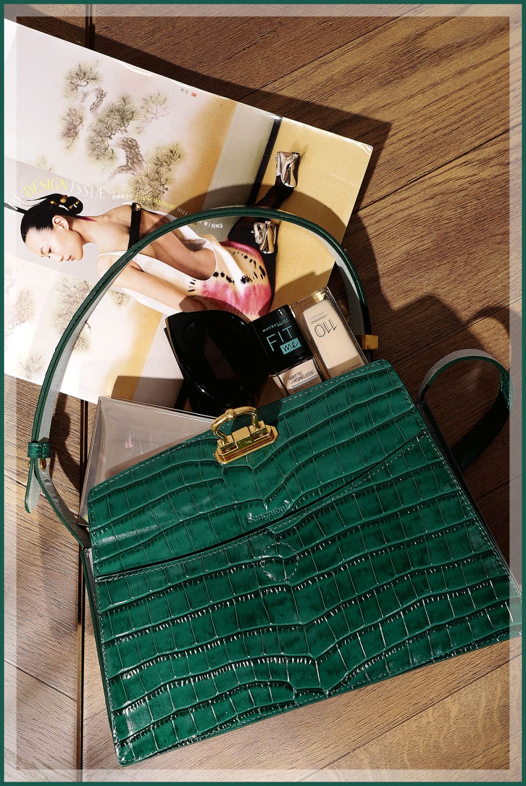 鳄鱼压纹的设计显得包包特别高级,优雅知性的感觉说来就来,背这个包去一些重要场合还是很压得住场的👇