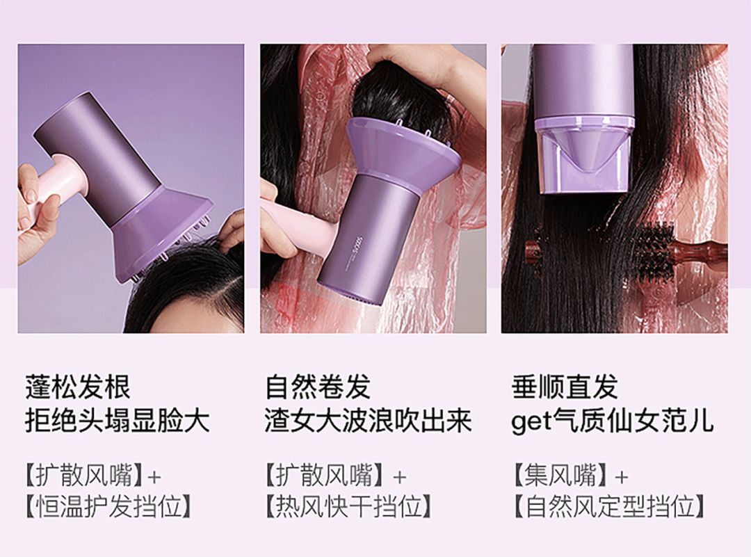 不管你是扁塌头发、卷发还是直发,换个风嘴就能满足造型需要啦👇