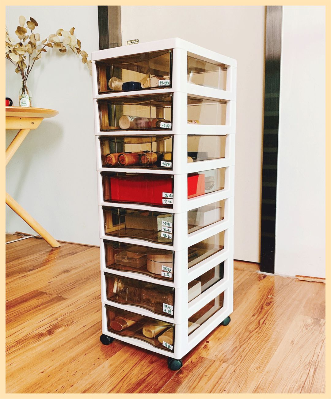 这是一个(半)透明收纳柜,我东西比较多所以买了8层款,还有其它不同的层数可以选择👇