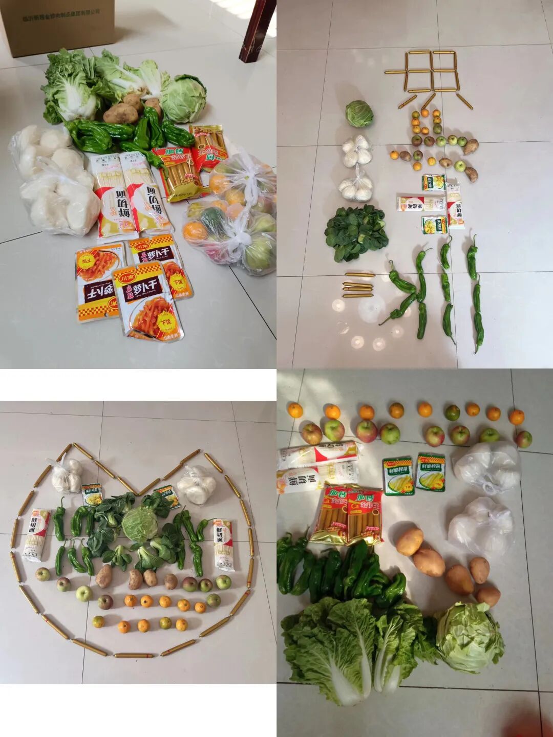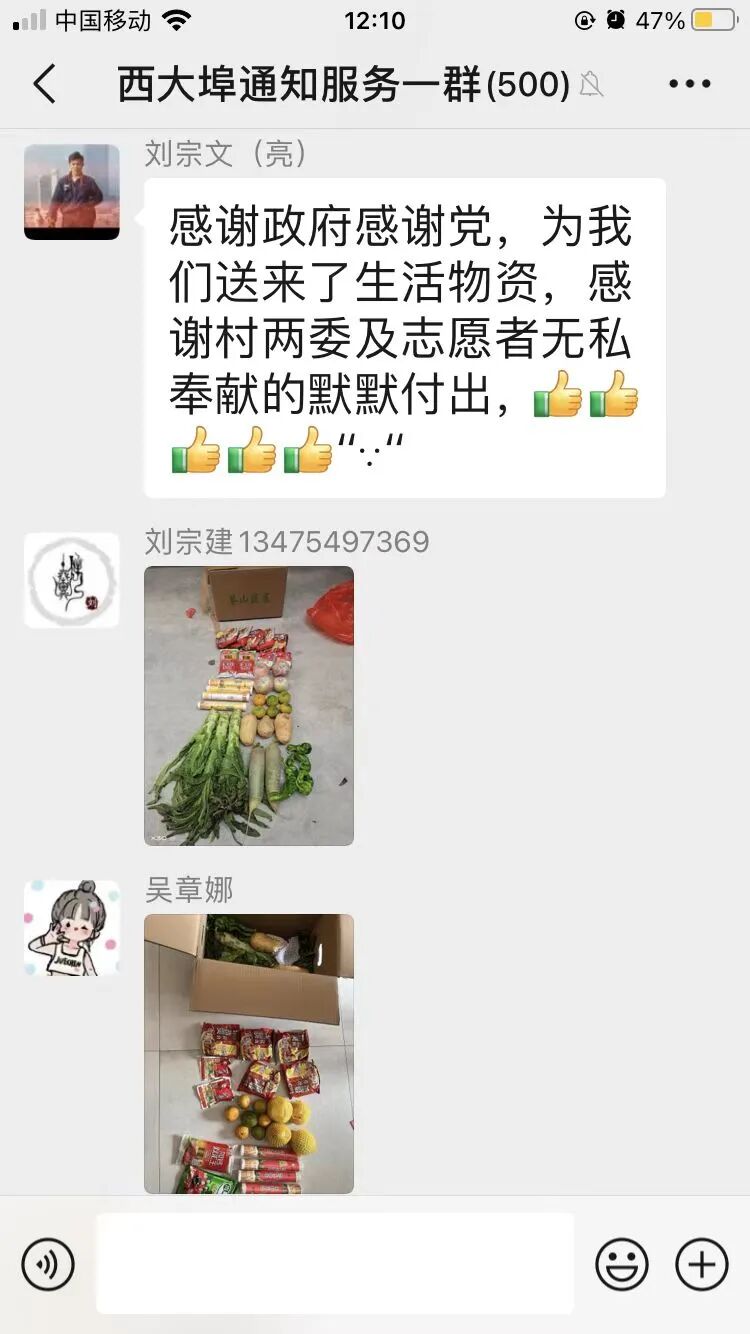 刘宗祥激动的说:“这几天看到朋友圈很多人晒政府送的物资,很羡慕,没想到我们这么快也收到了。感谢党和政府对我们的关心,感谢志愿者们。菜很新鲜,种类也有很多样,够吃好几天的了。”