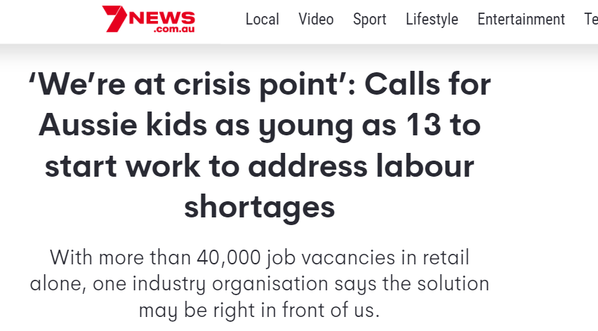然而接着可能面临的是员工短缺,我们在《欢迎来到艰难时代》里介绍过澳大利亚缺服务员、柜员等零售业与人接触的雇工的事,八月数据是差了4万多人,然后找不到地方补缺,于是行业协会开始讨论要不要放13岁童工进来。但童工也会感染,也可能抽奖抽中后遗症,本质上餐饮业就是高风险行业,从业人员缺口会是一个比较大的问题。