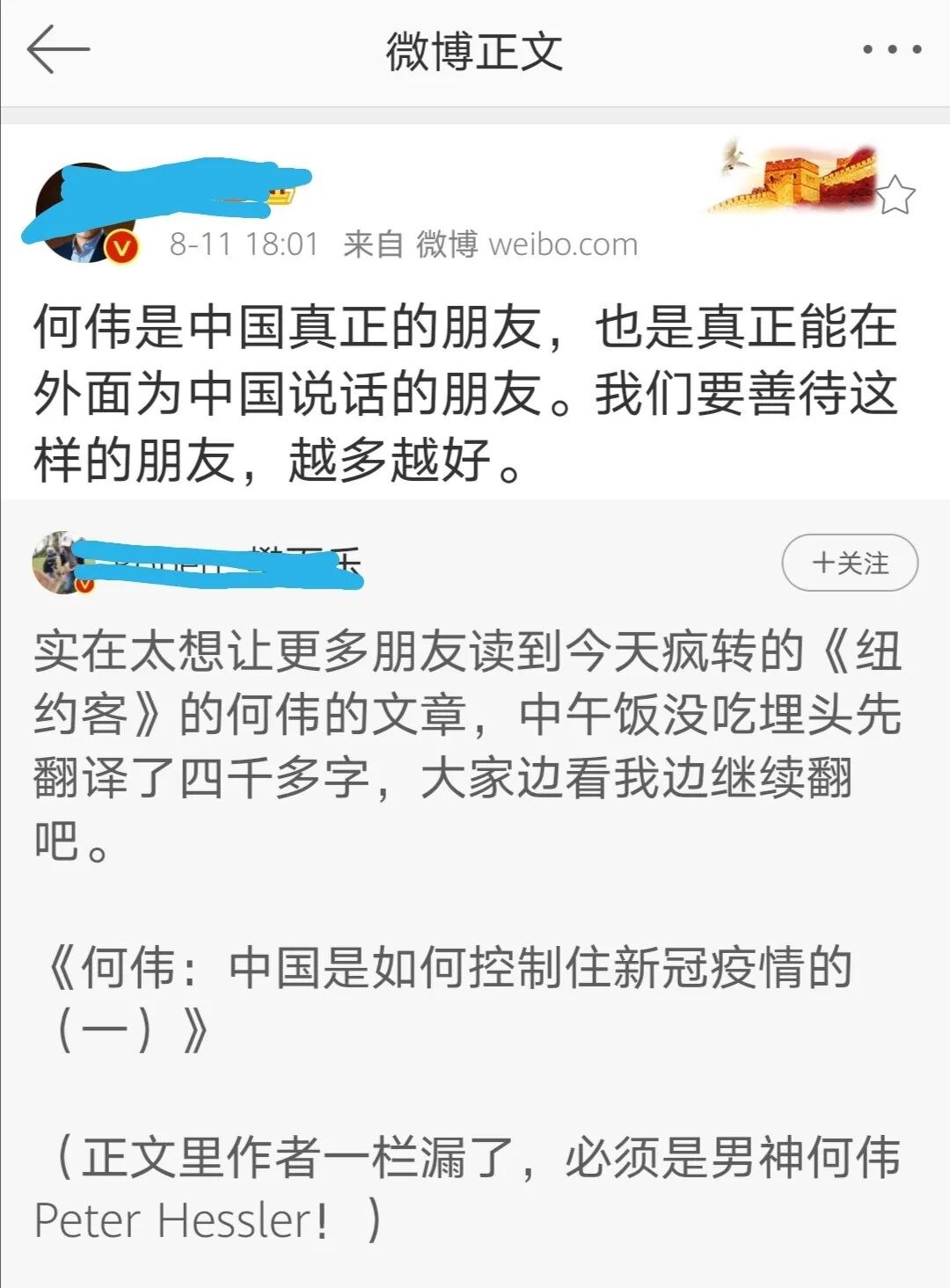 很多人可能一看文章的标题,或者看了翻译版本,就想当然地以为何伟是在美国给中国说公道话。我可以很明确地告诉这些朋友,去读英文原文吧,一个西方的英文阅读者看到何伟的这篇文章,绝不会对中国留下什么正面的印象。