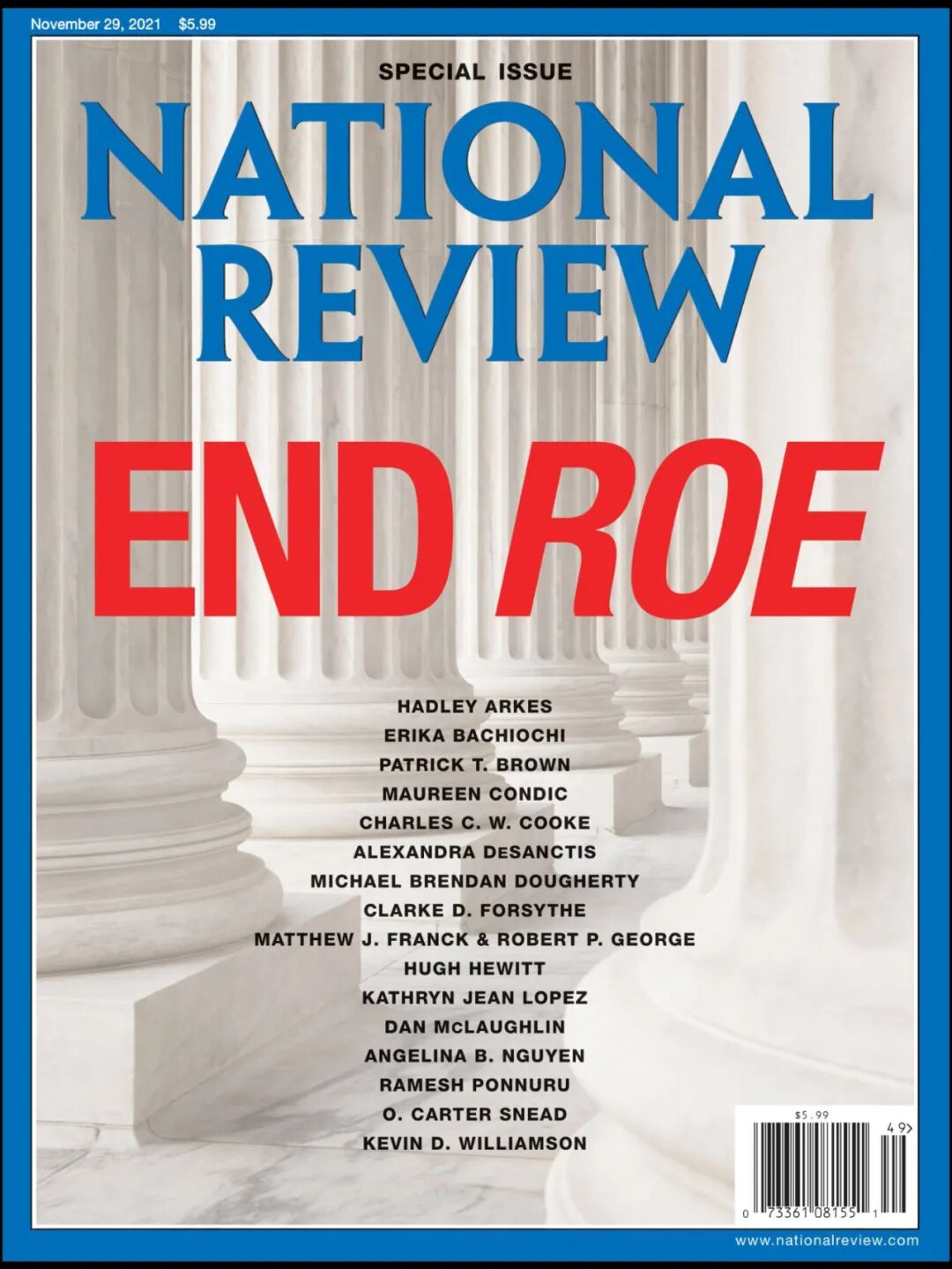阿利托大法官从法律基础、推理逻辑等角度对罗伊诉韦德案进行了否定,并且认为罗伊诉韦德案的结果造成了持续性的破坏后果,加深了美国社会的分裂,这些点跟我们介绍《国家评论》那一期专题时看到的保守派专家们给出的理由不能说一一对应吧,只能说差不多如出一辙。从这个角度,多数意见虽然是阿利托起草的,但它其实汇聚了几代美国保守派的智慧。