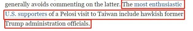 其实早在佩洛西确定落地之前,《纽时》就组织了一系列反对佩洛西去台湾的文章。其中最被广泛引用的可能要属资深国际事务专栏作家弗里德曼的评论,这篇评论有中文版,有兴趣的朋友可以搜来读读。