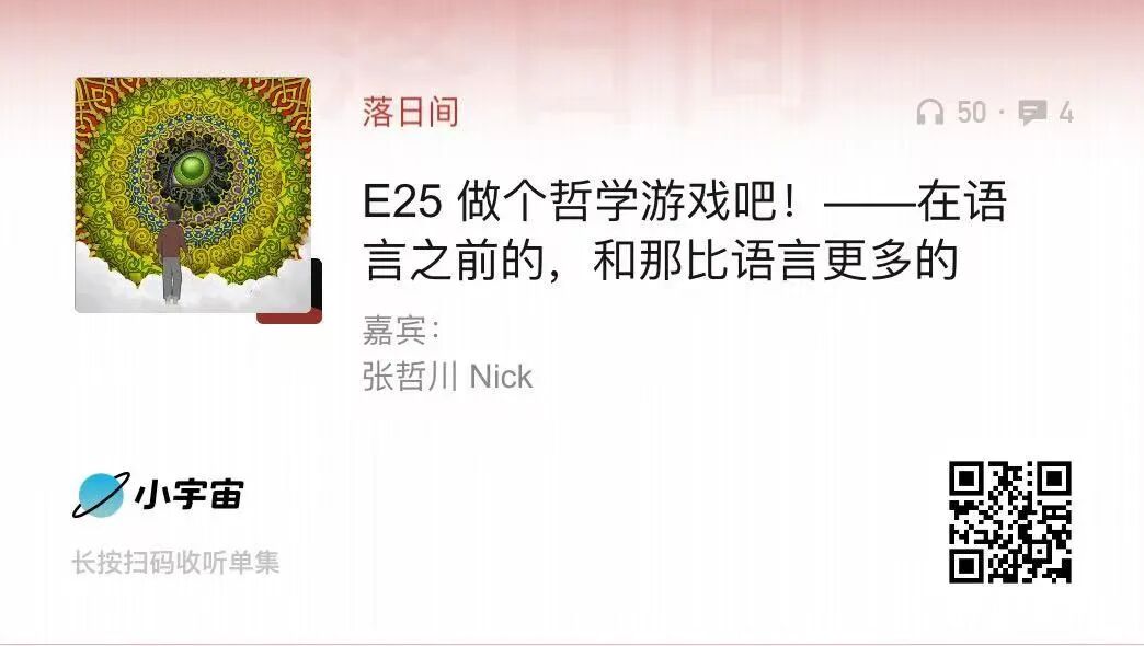 我们先回顾了姜老师与NExT Studios的渊源,和他玩《疑案追声》的感受,聊起我们三人都在其中有深刻哲思感受的游戏作品,最后一同讨论了「做一个哲学游戏」的具体可能性。其中萦绕在讨论前后的,我觉得是对于游戏这个媒介与哲学的共鸣方式的探讨:游戏能带来的人与人之间的沟通似乎是「先语言」的,或者说是「无言的」,更加基础的、深入的;而其作为能将万物比特化而再重组的电子媒介存在,似乎又可不仅仅停留在语言之上,能借助运动、反馈、视听去给常以文字叙述的哲学更加丰富的感受与具体的把握。进入一个新的电子游戏,不仅作为一种与日常生活完全不同的「被抛」的场景而冲击着人,而当玩家经过了沉浸并逐渐熟悉了游戏世界,也有能够从Meta(元)的层面去解开游戏,去向玩家展现「在世界中的」的机会。欢迎一起跟随我们进行创作的头脑风暴与讨论,与哲学教授姜宇辉、《疑案追声》游戏制作人张哲川来做哲学游戏。欢迎在小宇宙和公众号的评论区分享你的观点。扫码,或在QQ音乐,苹果等Podcast平台搜索 落日间*本期播客节目是落日间与游戏工作室 NExT Studios 官方播客《爱游新生》的串台节目,关于《爱游新生》:「爱游新生」——NExT播客新体验,自带New Experience and Technology(新体验与技术)基因,关注游戏的人,谈论关于游戏的方方面面,立志做一个只要想进入游戏的世界,就能听得懂的游戏聊天节目。巴黎高等师范学校硕士,复旦大学哲学博士。华东师范大学哲学系教授,博士生导师。外国哲学教研室主任。上海市“曙光学者”。法国哲学研究会理事。主要研究方向为当代法国哲学与艺术哲学。专著有《德勒兹身体美学研究》与《画与真:梅洛-庞蒂与中国山水画境》。译著有《千高原》与《普鲁斯特与符号》。BGM:Jason Rorher - Passage 游戏背景音乐