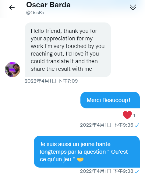 这篇文章是我在网上偶然遇见的,充满着对思索游戏同路人的好奇翻译了这篇文章,并且十分惊喜地发现他或许用较为简明和清晰的方式(至少远远比 David Kanaga 的《笔记》,或者是 Ian Bogost 《电子游戏是一团乱》 要易读)阐明了某些游戏的重要之物。这或许他在猛扎入游戏研究后又能脱身而保持合适距离的缘故。正如他所谈的,去为游戏/玩寻找定义是一件「非常危险」甚至「濒临毁灭」的事:就正如1933年赫伊津哈在莱顿演讲中警告的那样:「游戏是一个吞噬一切的范畴,就像愚行(当愚行占据了伊拉斯谟的思想之后)已成了整个世界的女皇时一样」。而我自己,与曾经陷入其中的同路人也曾亲身感受过那种思考的危险。所以当我看到这篇文章时我很开心,不仅是遇上了思索的同路者,也不仅是因为我像他一样也如此热爱《浪客行》。重要的是,我认为他给出的定义 fiction of doing,以及 formalized fiction of doing 的说法是有益的选择。对我来说,在接受了德勒兹对概念和哲学的看法后对于「何为游戏」的回答寻找正确答案不再是我目的,重点在于发明一个怎样的概念能够揭示更多现实的晦暗(并非发明更多晦暗),即,概念能展开怎样的思的速度与空间。非常巧合的是,他思索游戏的开端与我很接近:「相信却也不信(believes without believing)」,不过这在他视作开单子赫伊津哈「严肃性」,以及凯鲁瓦「假信 make-believe」那里已有类似的传统,此外他对体育的描述和概括稍显单薄,而或许游戏研究开始的时间可以上溯至康德会更合适些(游戏严肃的谱系学与「假信」也是我最早的出发点,可参考拙文《「严肃」的游戏》与《游戏的高度严肃性》)。但这或许都不是关键,我觉得他最终寻得的、我翻译为「做的虚构」的概念比起其他复杂的,确实是有力、美、且有联结的潜能的。例如在这点上我觉得能以此连通策展人汉斯·乌利齐·奥布里斯特(Hans Ulrich Obrist)所发起的一系列 do it 做了它的 DIY 艺术运动,以及更多包括引导的身体剧场,甚至冥想活动等。值得注意的是,这里的 doing 就像他描述的,不只是行动(action),还有反思,感受,以及我认为十分重要的:指向一段展开的过程,就像他结尾所说的:游戏是让人做的艺术(art of making people do)Oscar Barda
