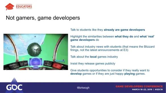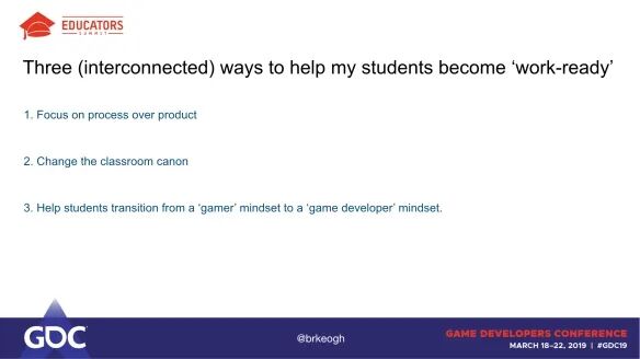 [1] GDC Vault: https://www.gdcvault.com/play/1025928/Are-Games-Art-School-How[2] 这里: https://brkeogh.com/2018/05/07/student-expectations-course-marketing-and-the-invisible-labour-of-game-development/[3] 这里: https://brkeogh.com/2018/10/03/theres-not-enough-videogames-everyone-should-be-encouraged-to-make-them-or-videogames-are-just-art/[4] 来源链接: https://docs.google.com/document/d/1clSMqLLeuUVUOBbsFWbI5PmcTzDHgXmfb7l75qqqkZc/edit#heading=h.q53lh5ksimg0[5] Gamesindustry.biz: http://gamesindustry.biz/[6] 怀疑: https://www.polygon.com/2018/9/28/17911372/there-are-too-many-video-games-what-now-indiepocalypse[7] 这个: https://brkeogh.itch.io/learning-unity[8] 没有: https://www.polygon.com/2017/9/2/16247112/video-game-developer-secrets[9] 正确的方式!: https://www.polygon.com/2018/12/19/18147266/game-dev-crimes-twitter-thread-steve-gaynor[10] Game Jam: https://itch.io/jam/make-a-thing-may-2018[11] Douglas Wilson, Bennet Foddy, and Michael McMaster: https://www.gdcvault.com/play/1024954/Game-a-Week-Teaching-Students