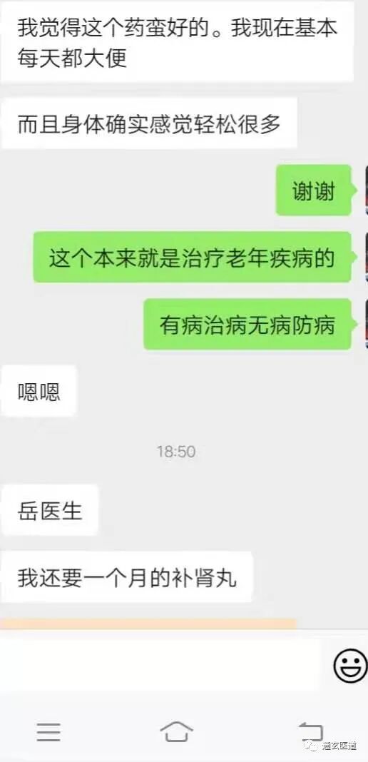 他叫岳德领,河南南阳方城人,没有家学渊源,完全靠得是自学,自学是为了救父亲。2015年以前,父亲经常发烧咳嗽,开始声嘶,后来失音,症状类似肺癌。在医院住院时感觉还可以。有时出院一天,马上就复发。后来,用中药喝了两个月才痊愈。到最后发展为老年痴呆,自从用上补肾丸,大便畅通,再没有发烧。一直服用到逝世。父亲多次夸奖补肾丸效果好。