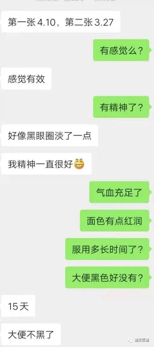 他告诉我,以前喝酒半斤就是最大量,而服用补肾丸后喝了6两也没醉。半月后,给我反馈,头发掉的少了。他的朋友都说他黑眼圈没有了。可能是年轻体质好吧。服用3个月后,问我还需要服用吗,我对比了一下照片,基本上黑眼圈没有了,他自己也认可。我说你自己看着办吧,想服用再服用一两个月当保健品用也可以。这样,他又要了一个月的药丸。