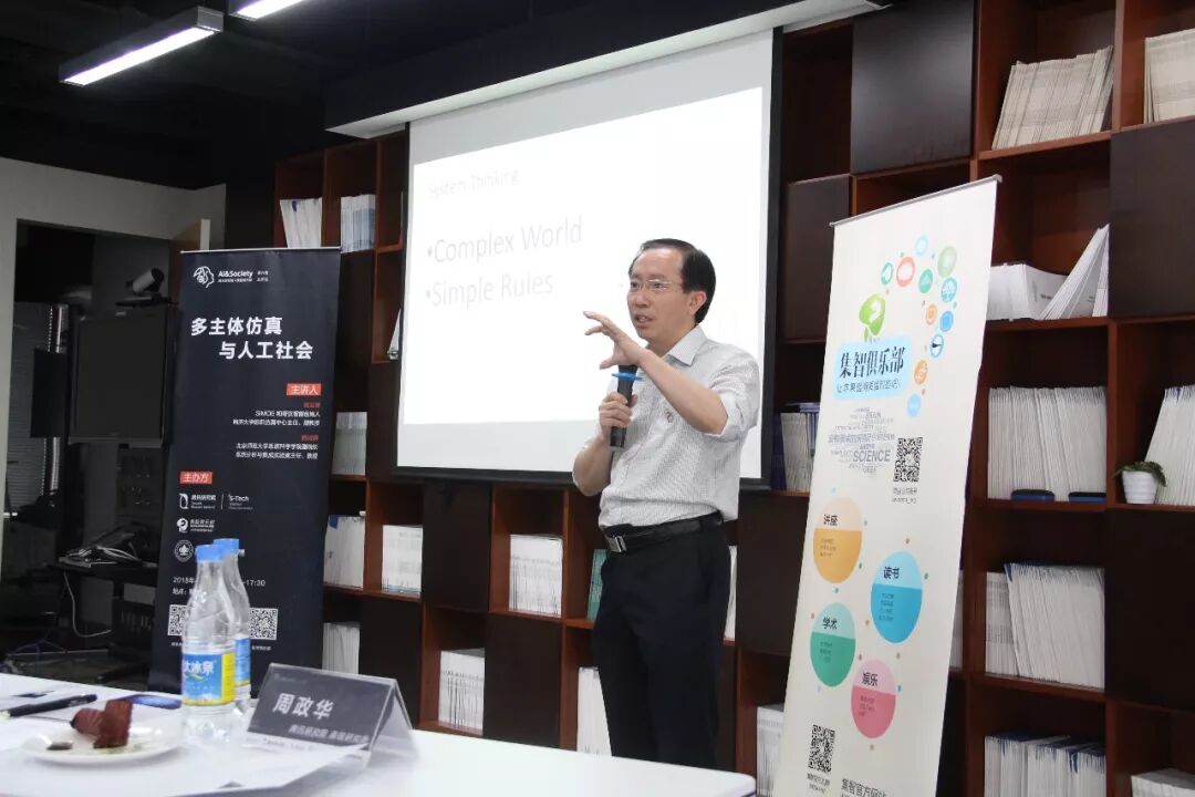 活动开始,集智俱乐部创始人、北师大系统科学学院教授张江介绍了本次活动的主题——多主体系统(multi-agent system)。多主体系统是由多个自主运行的agent组成的整体,系统必须找出一种使各个agent协同工作的适当方法。多主体仿真建模,始于美国圣塔菲研究所,他们使用Swarm软件为复杂的个体行为建模, 用于对经济行为进行仿真研究。