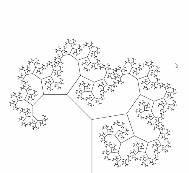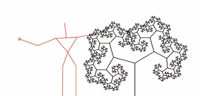 为了能自由控制分形的形状,我对他的代码做了一点调整,可以通过移动鼠标来修改树枝的角度,既而生成树的动画。你可以去自己玩一下:
