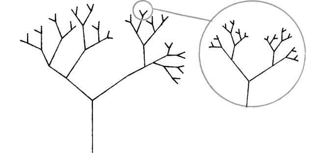 这又让我的思绪回到了树上,你可以把树想成分形的样子。下面是一棵树的草图。