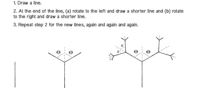在《Code of Nature》这本书中,Daniel Shiffman实现了用一个简单的算法 ,来绘制这样的分形树。