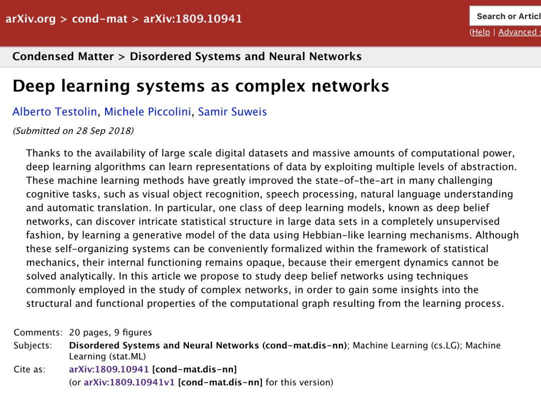 近日,几位意大利研究者在其放在arXiv上的论文(Deep learing systems as complex networks)中率先做了这方面的尝试。