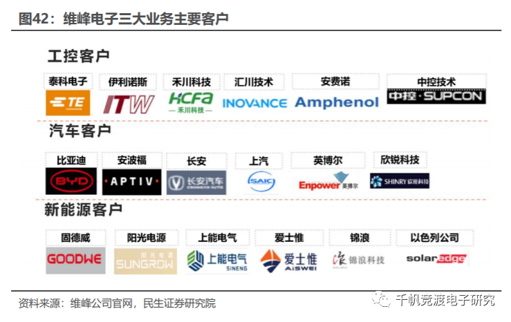 下游客户结构多元,且积极开拓海外客户。目前公司下游客户包括终端厂商、电子元器件贸易商和品牌商客户,其中终端客户是直接使用公司产品,例如比亚迪和汇川技术,电子元器件贸易公司是根据市场去向维峰等采购后对外售出,公司的品牌客户主要是泰科、伍尔特等国际领先连接器厂商,其定制并采购维峰的产品后贴牌售出。同时也侧面证实公司产品的质量。
