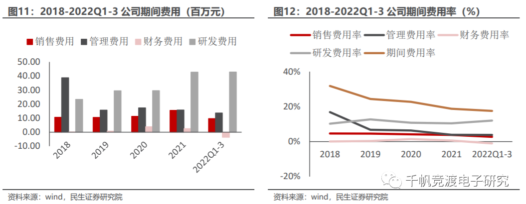 三费控制较优,高研发投入助力业绩高增长。公司期间费用率逐步下降,期间费用率由2018年的31.82%下降至2022年Q1-Q3的17.53%。2022年Q1-Q3,公司销售费用率、管理费用率、财务费用率分别为2.71%、3.83%、-1.03%。研发费用呈现逐年提高的趋势,2022年Q1-Q3研发费用达到0.43亿元,研发费用率为12.01%,高研发投入保证了公司技术和产品的领先地位。