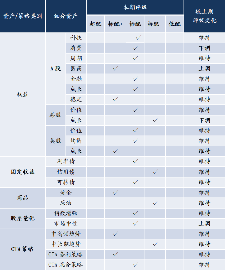 权益方面,A股、港股配置性价比趋于极值,配置环境逐步好转,美股胜率正在逐步增加;