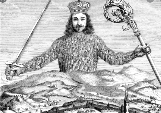 在前社会状态下是“所有人对所有人的战争”中,但为了和平,所以通过社会契约的方式,建立“利维坦”。