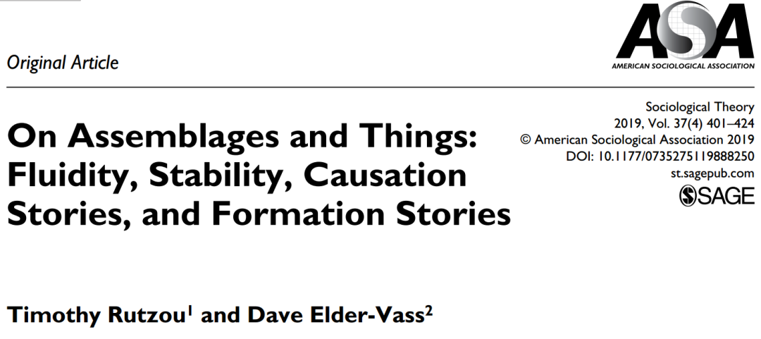 Timothy Rutzou and Dave Elder-Vass,2019, “ On Assemblages and Thing” Sociological Theory Vol. 37(4) 401–424.