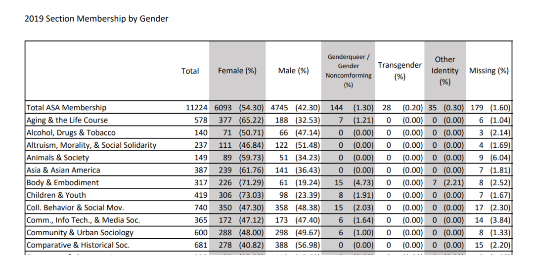 Sociology of Sex and Gender这个分会的会员数为1025名,是所有分会中人数最多的。当然,有的人可能是多个分会的成员。