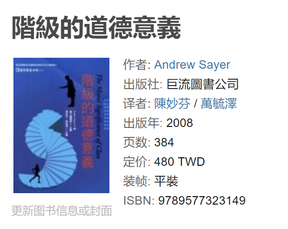 Sayer, Andrew,《阶级的道德意义》,陈妙芬、万毓泽译,巨流:第1-2章