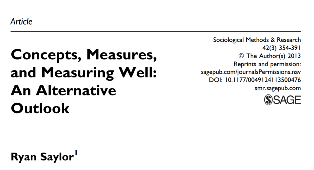 Saylor, Ryan. 2013. “Concepts, Measures, andMeasuring Well: An Alternative Outlook.” Sociological Methods & Research42(3):354–91.