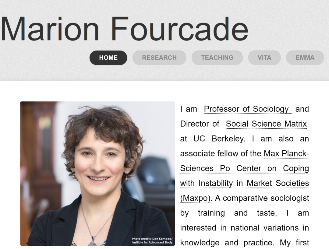 我还会介绍另一位我认为目前最为系统的研究学者,也是LSE社会学系去年的年度演讲者、来自加州大学伯克利分校的Marion Fourcade教授。