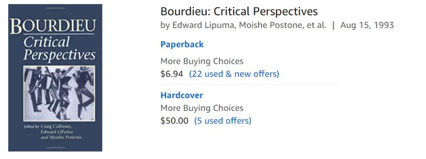 第一本书Bourdieu: Critical Perspectives.(1993)年代去久,所以如今看来都是其中作者都是当今大咖了,绍Craig Calhoun已经是LSE校长,Moish Postone刚刚过世了。贡献者之一的Cicourel,连他的学生Neil Gross都已经是当今美国社会学的理论界当红人物了。