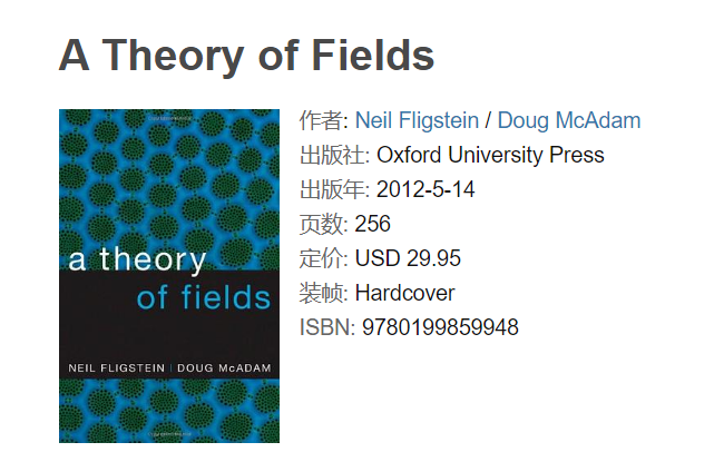 场域理论前沿的美国成果,就是Doug McAdam and Neil Fligstein合著的A Theory of Fields (Oxford University Press, 2012),提出了“策略行动场域”(Strategic Action Field)理论。