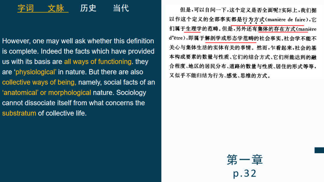 以下,是本周日晚上要精读涂尔干的《社会学方法的准则》一书的第一章和第五章。我将呈现这种精读的方法。