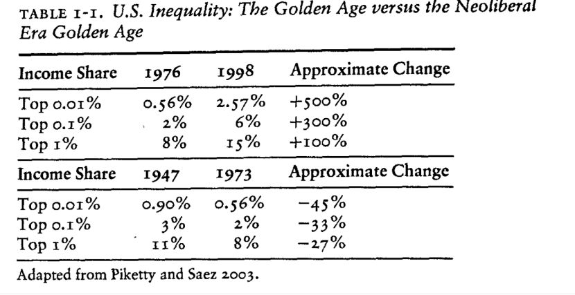 但时至今日,二位作者也认为,二战后福利国家繁荣(1947-1973年)之后的新自由主义,只是在1990s处于巅峰,而2008年经济危机则明显受到了冲击。
