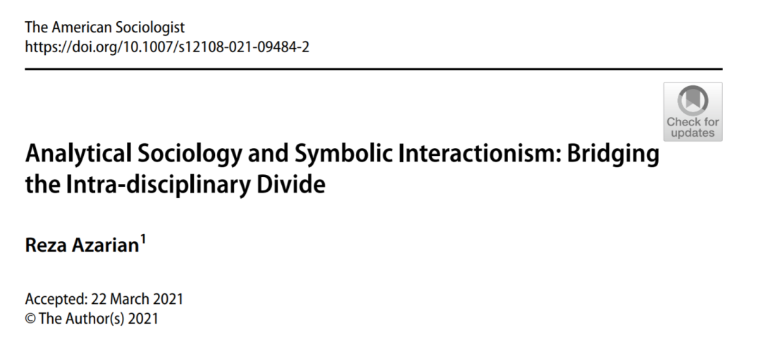 Azarian, Reza. 2021. “Analytical Sociology and Symbolic Interactionism: Bridging the Intra-Disciplinary Divide.” The American Sociologist.