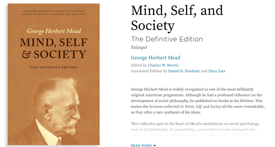Mead, George Herbert. 2015. Mind, Self andS ociety: The Definitive Edition. edited by D. R. Huebner, J. Hans, and C.W. Morris. Chicago ; London: University of Chicago Press.