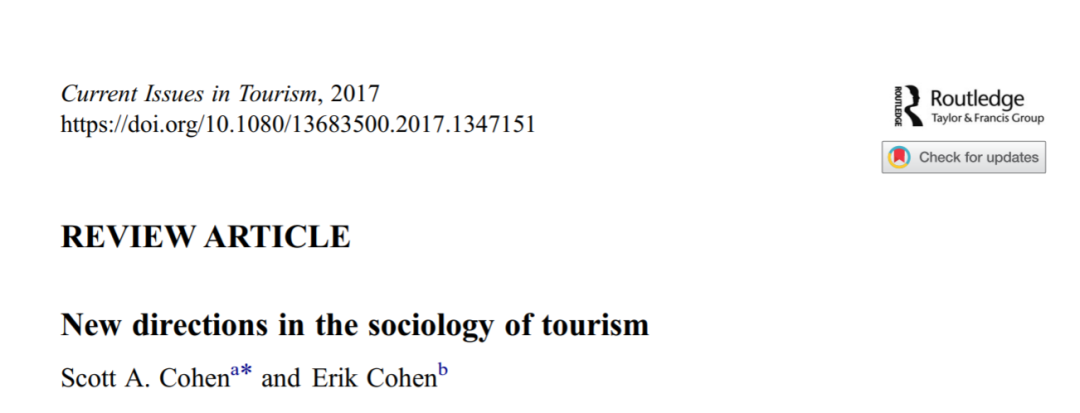 Cohen, Scott A., and Erik Cohen. 2019. “New Directions in the Sociology ofTourism.” Current Issues in Tourism 22(2):153–72.