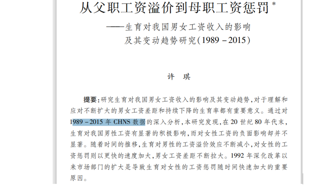 论文《从父职工资溢价到母职工资惩罚》