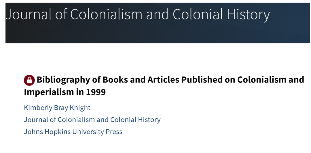 比如,如果你感兴趣的是殖民主义与帝国主义史,我就直接推荐你去看Journal of Colonialism and Colonial History这本期刊啦!每年都会发布:Bibliography of Books and Articles Published in English。