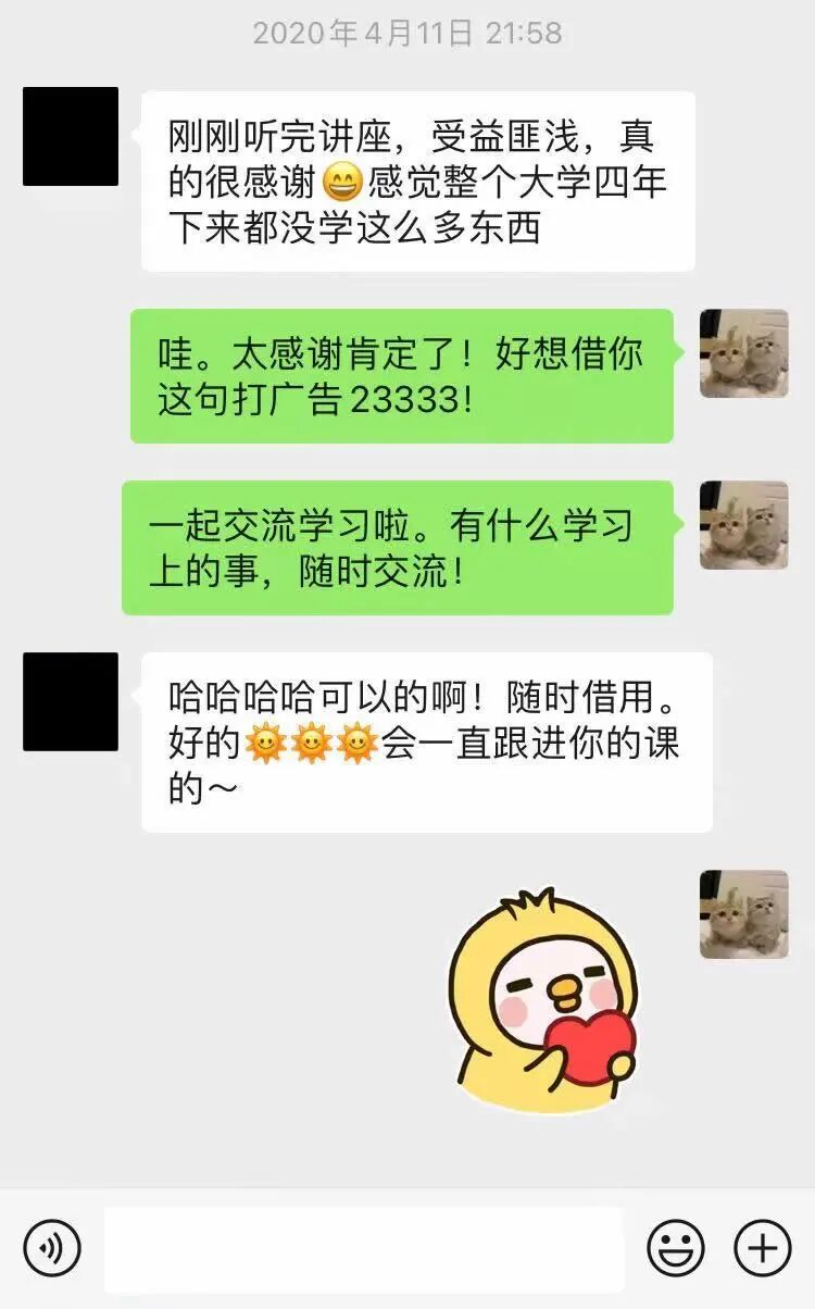 像这个论文系列讲座,已经历时2年,近5000名位同学先后参与。每次,当我收到反馈,看到同学也得到一些启发,都会回想到自己当初求学过程:由于时代、学校、师资甚至经济条件的限制,可能错失一些求知求学的机会。但如今平台越来越多,问题似乎已经变成了:如何在网上努力找到一份学习资源,变成了如何精选合适自己的、高质量学习资源。