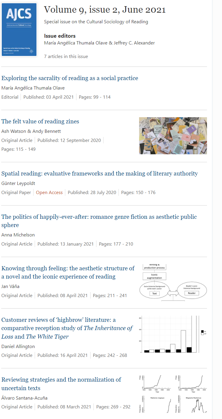 最近,American Journal of Cultural Sociology还专门办了一个专刊,关于阅读社会学
