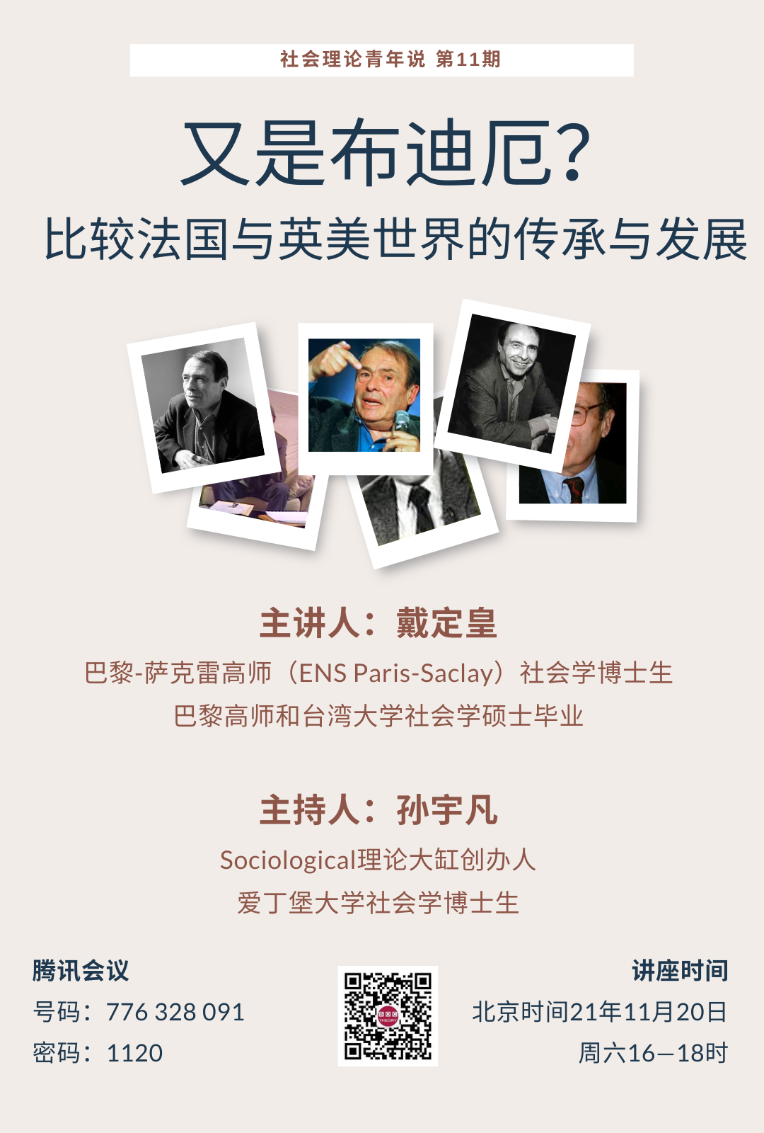 第11讲(2021年11月)是由巴黎-萨克雷高师社会学博士生戴定皇同学分享的《又是布迪厄?比较法国与英美世界的传承与发展》