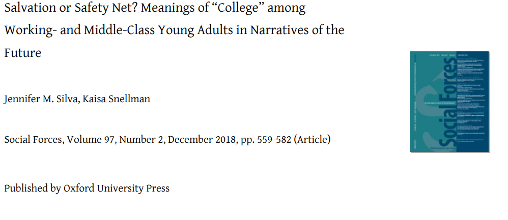 美国印第安纳大学社会学老师Jennifer M. Silva和她的团队访谈了60 名 18 至 23 岁的年轻人以及他/她们的51 名父母,就是想要搞明白:这些上大学的孩子和家庭,究竟怎么想象他/她们的大学经历、怎么想象他/她们的未来。