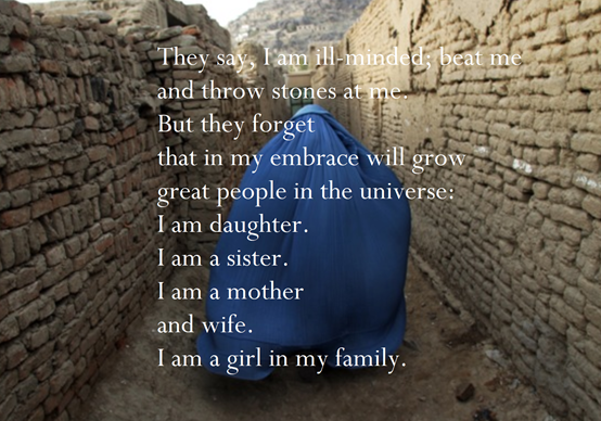 因此,在了解这个组织之前,我们不妨看看两首诗和一则自叙故事,都是阿富汗女性写的: