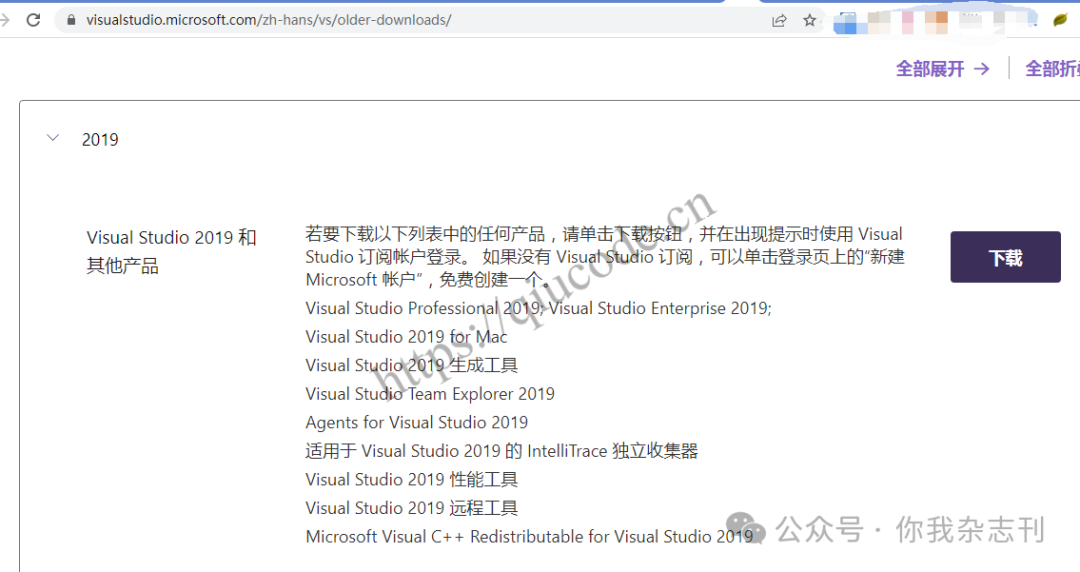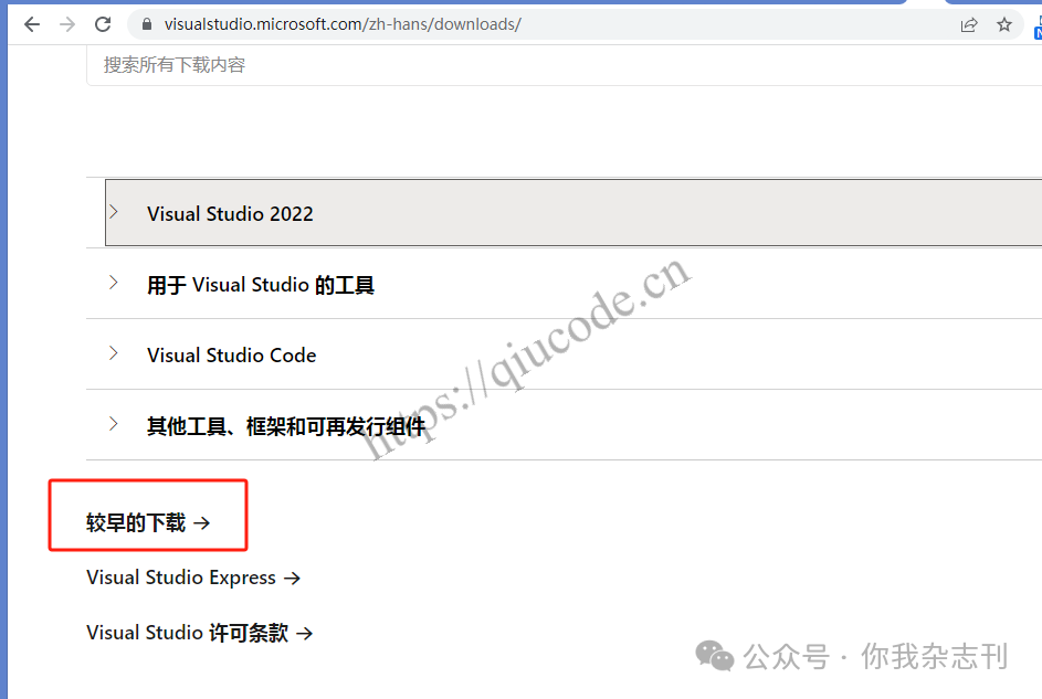 截止本文发稿前,Visual Studio 官网的最新版本是Visual Studio 2022,很显然,我们并不想下载最新版本的,就想用旧版本,那么,怎么办呢?